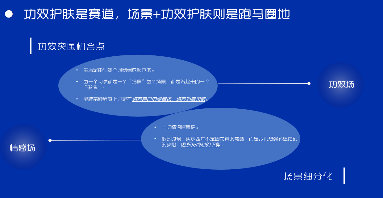 李婷在演講中分享了她的觀點:功效賽道的研發科技+成分濃度+護膚概念已經卷到沒邊,與其被動卷,不如主動“圈地”。璦爾博士認為功效護膚是賽道,場景+功效護膚則是跑馬圈地。當我們談熬夜賽道的時候其實在談熬夜后的消費者的生理需求和心理需求,是功效場和情感場的互動。一方面需要注意到消費者熬夜后肌膚狀態的變化,另一方面也要洞察消費者熬夜后心理狀態的變化。用功效場和情感場的互動,完成和消費者的靈魂共振。