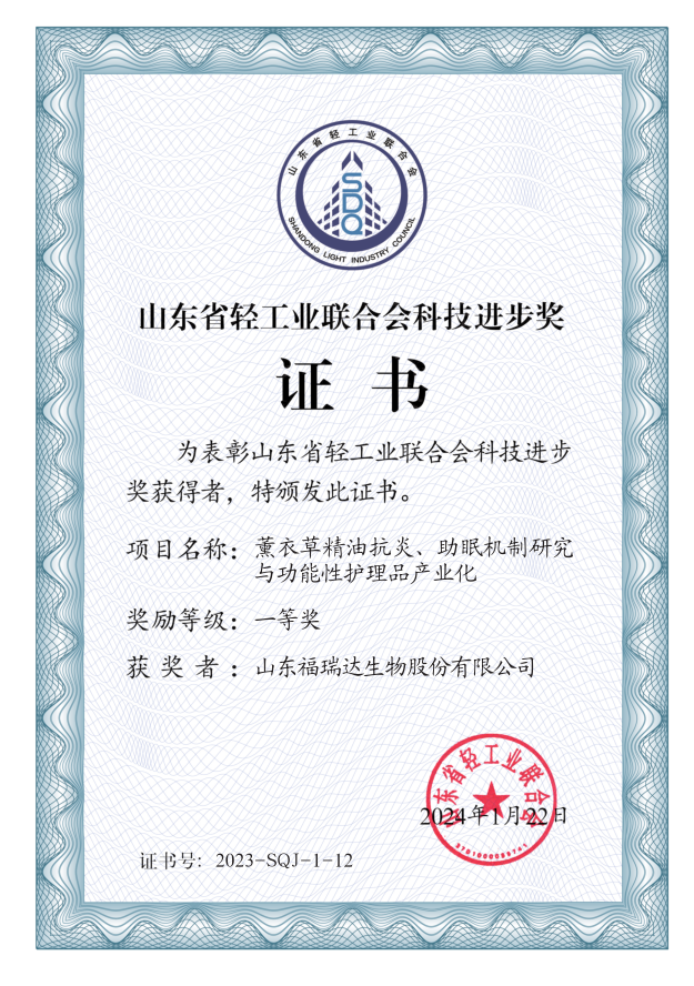 近日,山東省輕工業(yè)聯(lián)合會發(fā)布《關(guān)于2023年度山東省輕工業(yè)聯(lián)合會科學技術(shù)獎勵的決定》,福瑞達生物股份申報的“基于皮膚微生態(tài)研究的功能皮膚護理產(chǎn)品開發(fā)”、“薰衣草精油抗炎、助眠機制研究與功能性護理品產(chǎn)業(yè)化”兩個項目榮獲2023年度山東省輕工業(yè)聯(lián)合會科技進步獎一等獎。