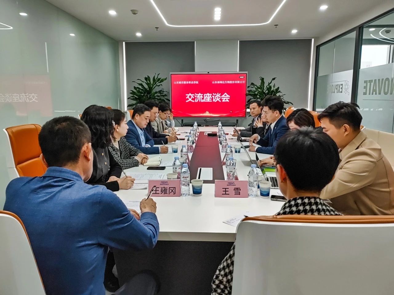 山東城市服務(wù)職業(yè)學(xué)院黨委委員、宣傳統(tǒng)戰(zhàn)部部長、文化與創(chuàng)意系主任方子晗、教務(wù)處處長鹿嵐清、現(xiàn)代商務(wù)系主任車延紅及相關(guān)院系負(fù)責(zé)人,福瑞達(dá)生物股份總經(jīng)理助理、頤蓮事業(yè)部總監(jiān)姜良艷,璦爾博士事業(yè)部總監(jiān)徐世香,達(dá)播商務(wù)部總監(jiān)趙輝及相關(guān)部門負(fù)責(zé)人共同參加會議。